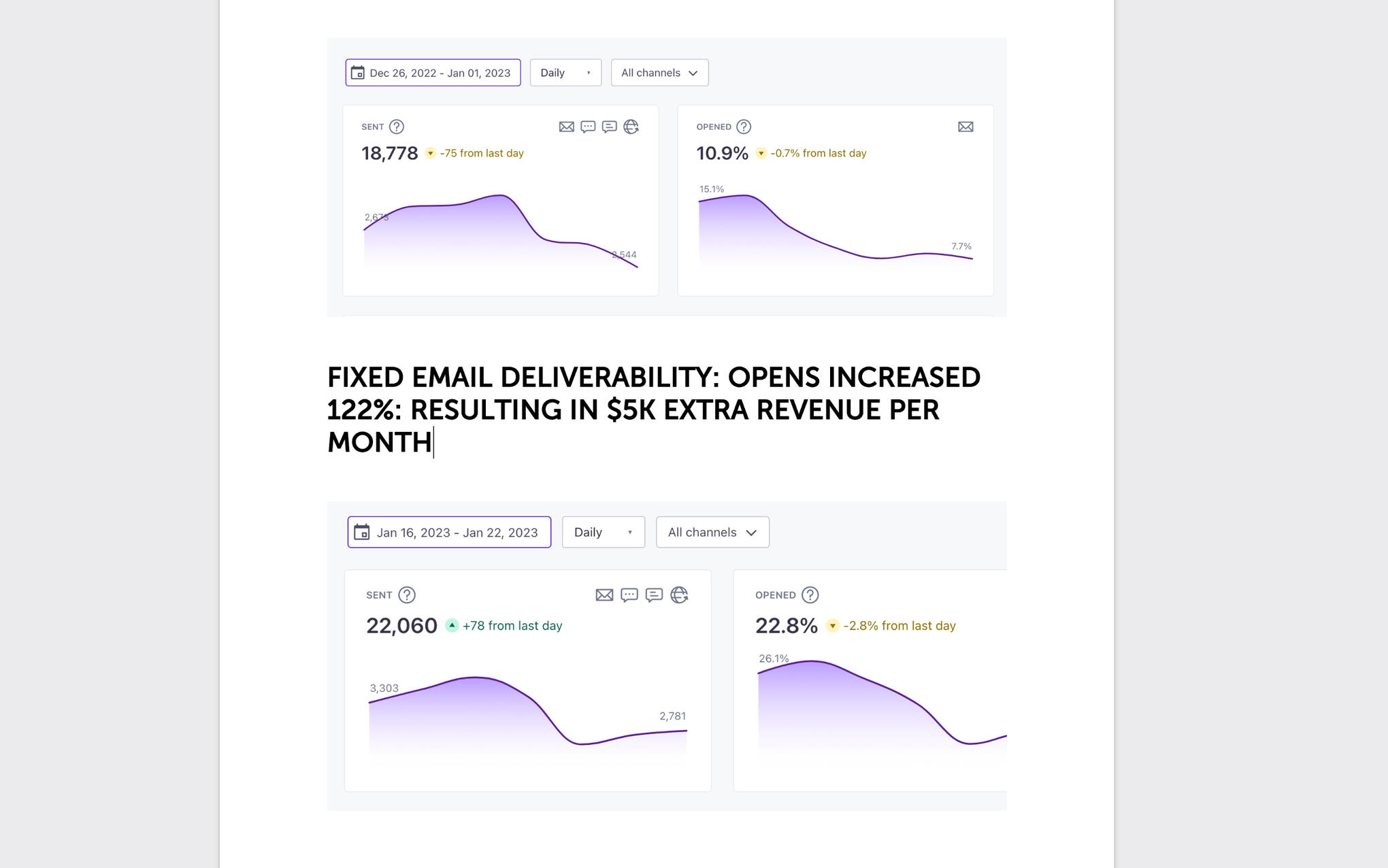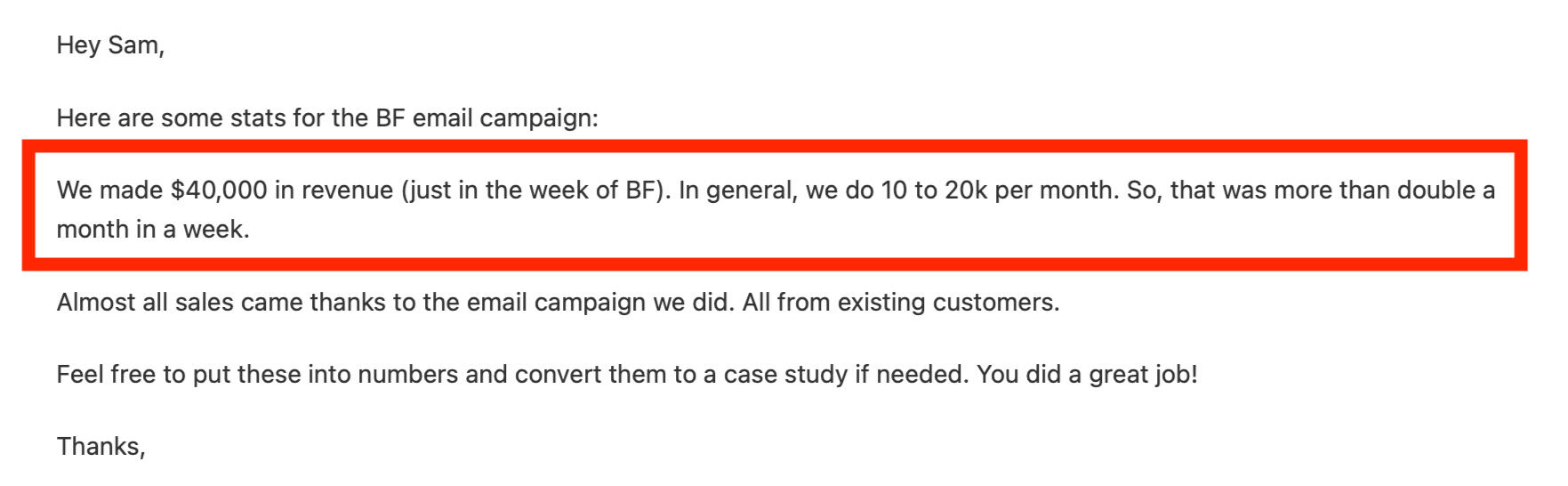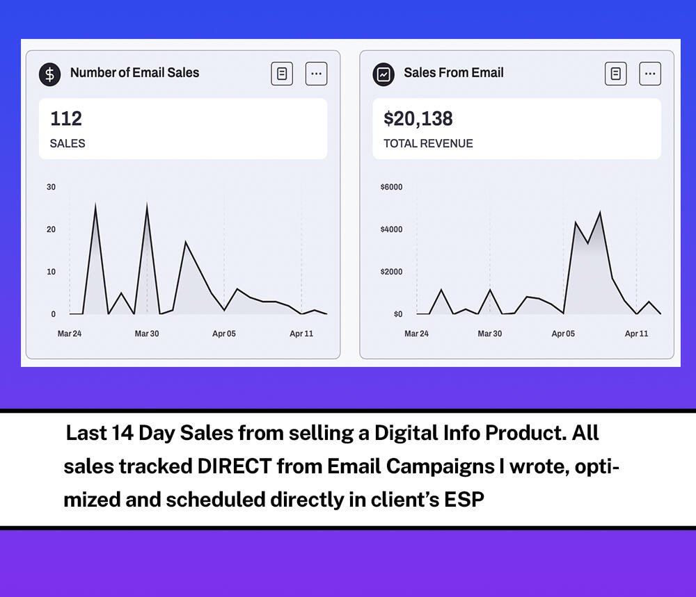 "Sam’s email copywriting and strategy is top-notch! I've worked with a few email marketers in the past with mixed results, but Sam knows what he’s doing. He took time to understand our business and his writing style is engaging and easy to read. It’s a little more than we wanted to pay but was well worth it. Highly recommended!!!!"